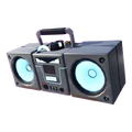 The Boom Box was an Epic explosive weapon in Battle Royale. Once thrown, it will begin to play music and emit powerful blasts that deal 200 damage to all structures within a spherical 2 tile radius, but do not harm the player. Additionally, Boom Boxes are affected by gravity and will fall if the floor beneath it is destroyed. Boom Boxes will automatically stop after 18 seconds, however, opponents may destroy a Boom Box by depleting all 400HP. Boom Boxes can be found in stacks of 2 from floor loot, chests, Vending Machines, Supply Llamas, and Supply Drops.