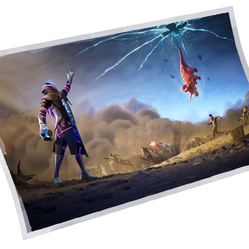 Junk Storm is an Uncommon Loading Screen in Battle Royale that could be obtained as a reward for completing three Junk Storm Missions during Season 10. The image shows Infinity using the recently added Junk Rift to rift multiple object from the sky onto the ground. A group of four, Sledgehammer, Armadillo, Scout, and Jonesy, are attempting to avoid the collision of the police car and the dinosaur statue. Nearby Sledgehammer and Armadillo is a sign on the ground with the coordinates I2, I3, J2, J3. Once Junk Storm has been earned, a Battle Star will be available in between the coordinates, on top of a mountain in the jungle with a face on it.