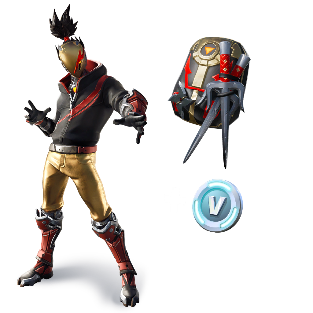 Red Strike is an Epic Outfit in Battle Royale that could be obtained by purchasing Red Strike Starter Pack. The Bladed Bag Back Bling is bundled with this outfit.