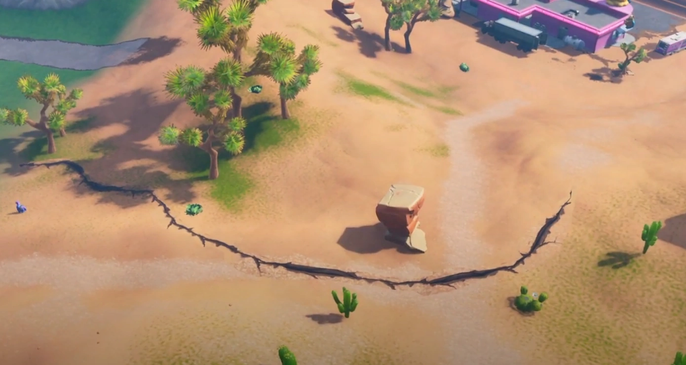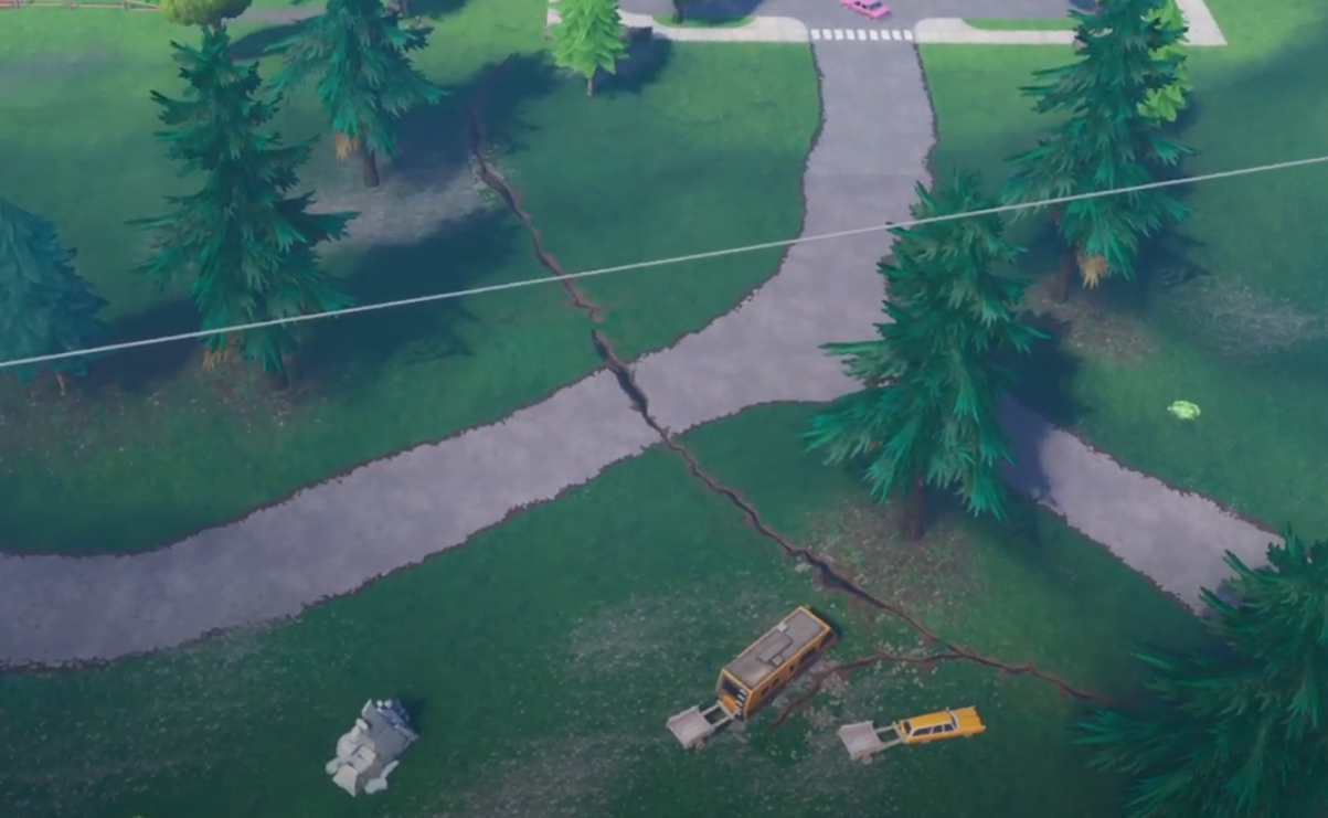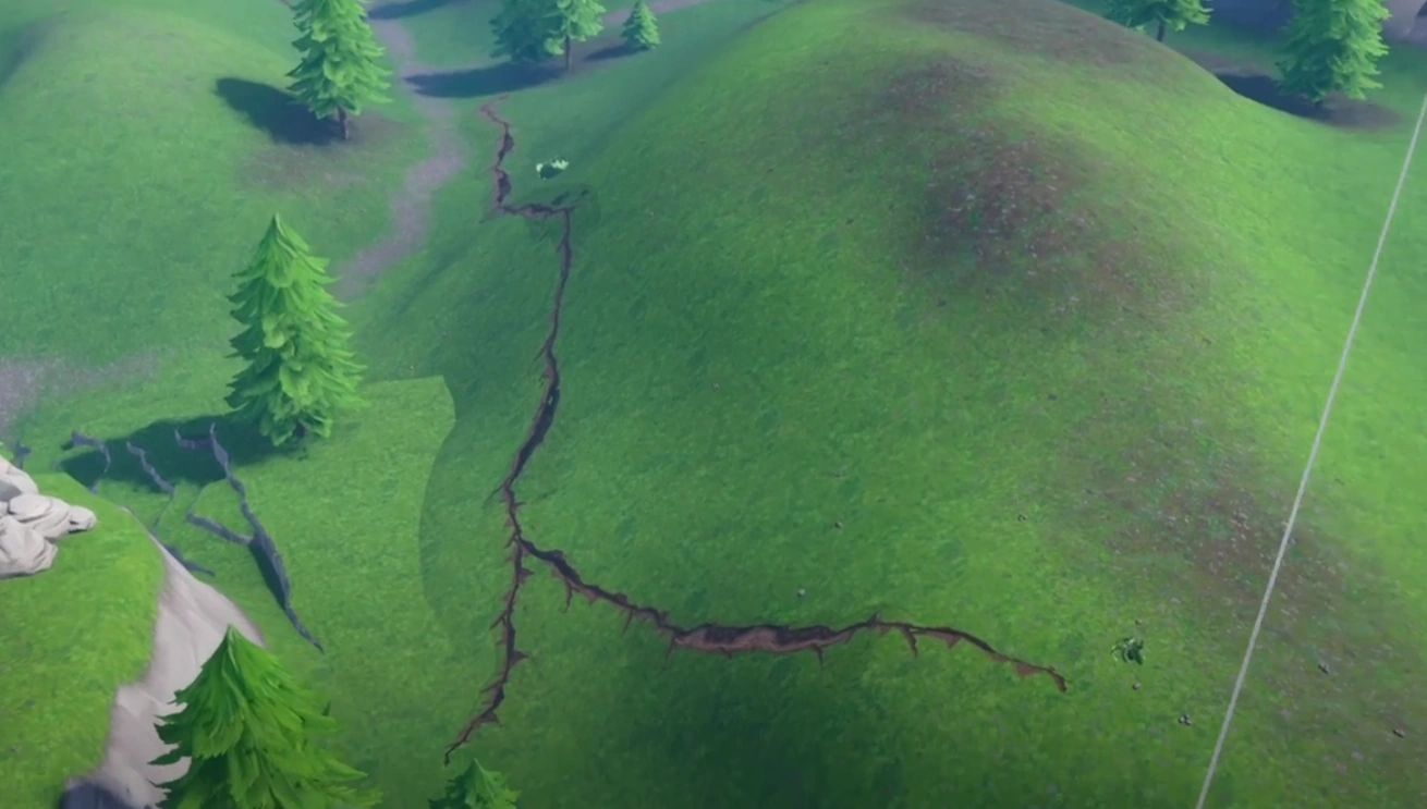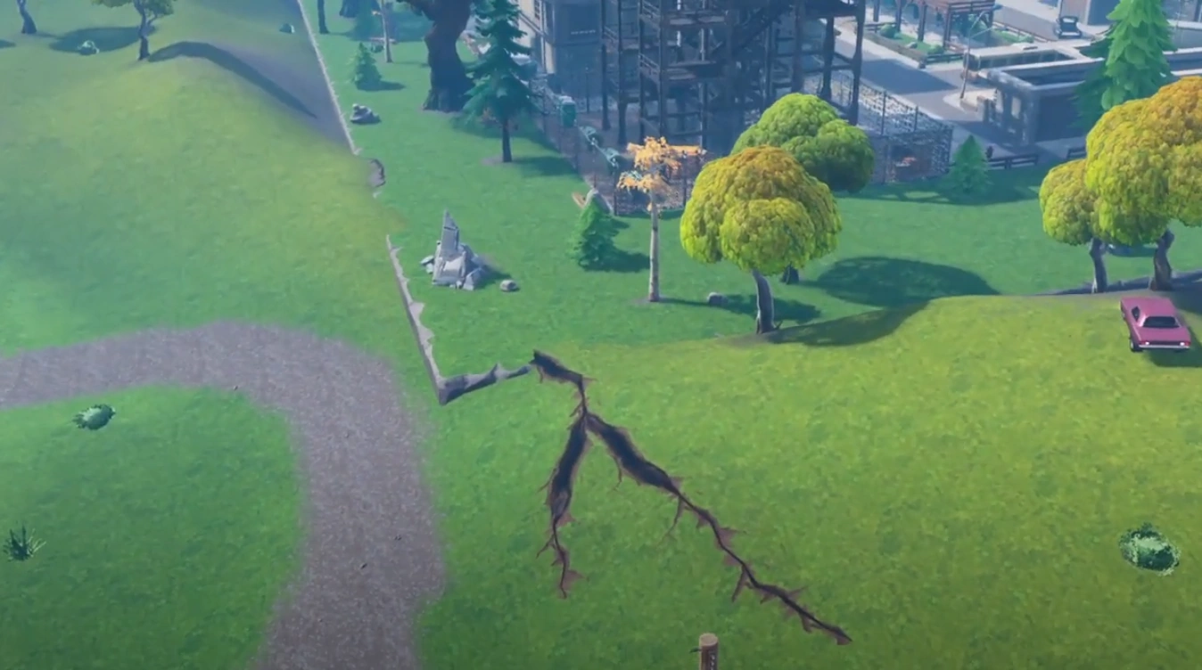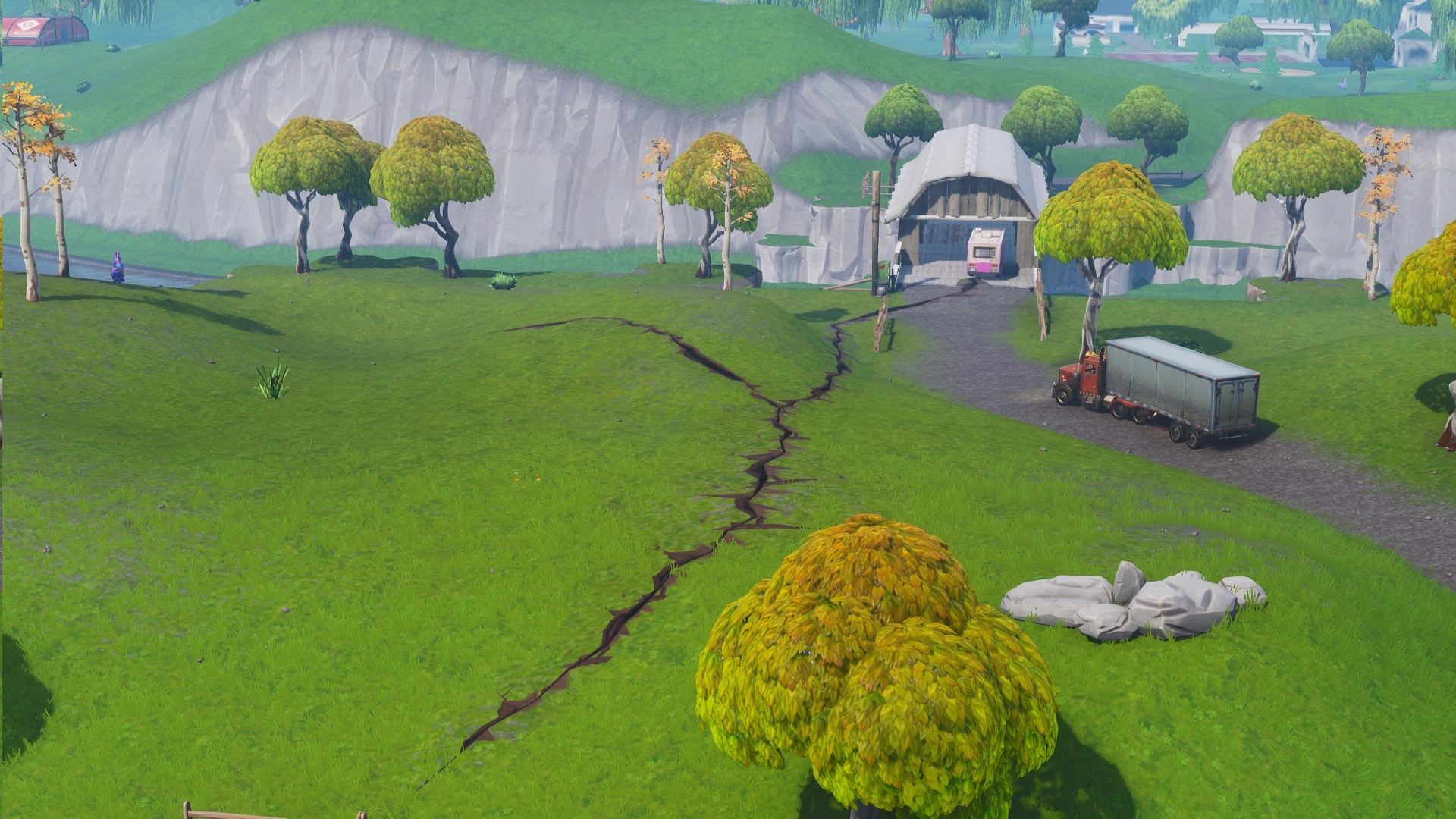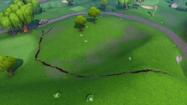 The Earthquake Event was a Live Event that took place in Season 7. Many cracks formed in the ground over a period of time, mostly focusing around what is now the Jungle Biome, probably from the pressure building up from the forming volcano. Eventually, a huge crack sweped through Tilted Towers destroying many cars and props. it made its way over to the new office building and destroyed it, creating its annual destruction for season 7.