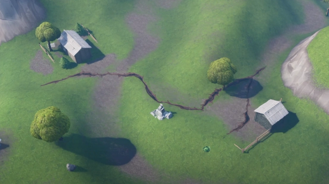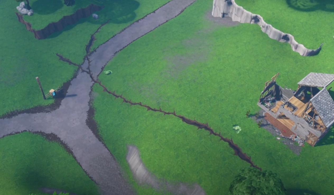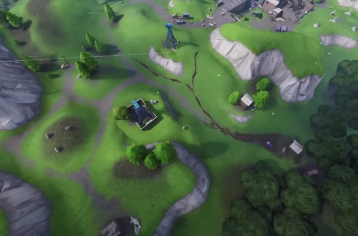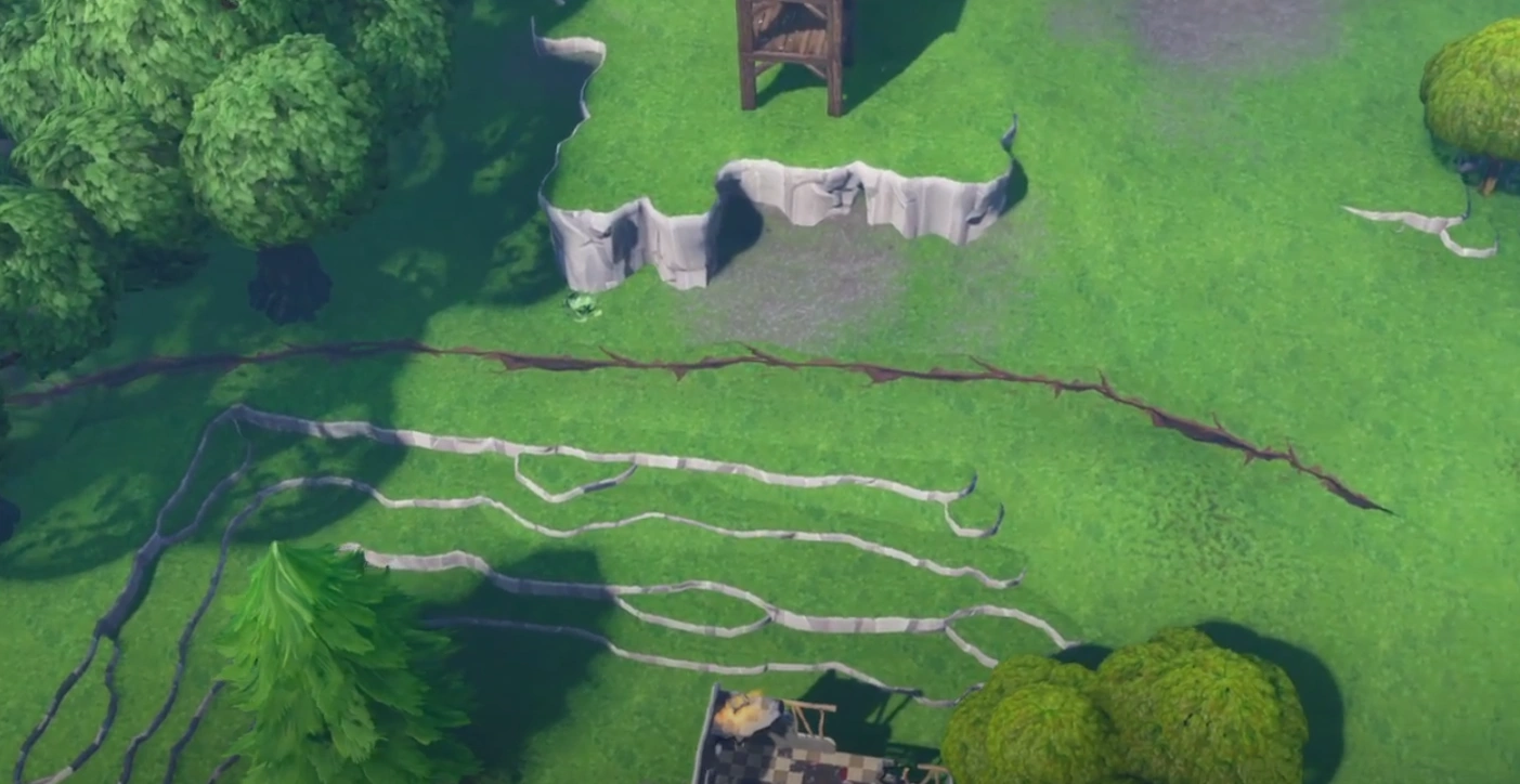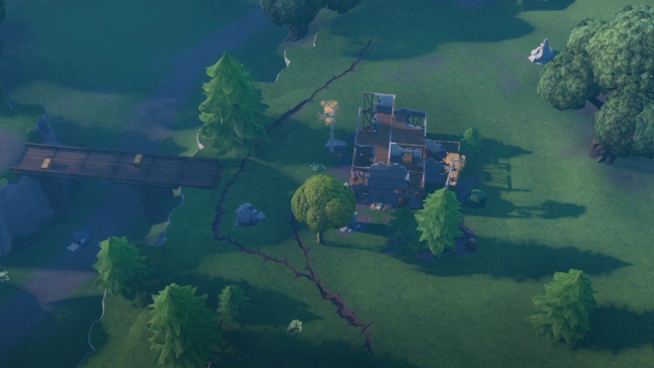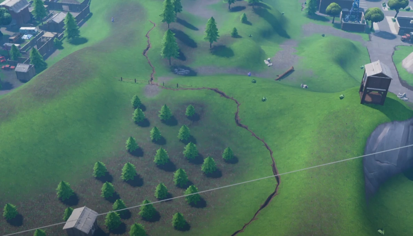 The Earthquake Event was a Live Event that took place in Season 7. Many cracks formed in the ground over a period of time, mostly focusing around what is now the Jungle Biome, probably from the pressure building up from the forming volcano. Eventually, a huge crack sweped through Tilted Towers destroying many cars and props. it made its way over to the new office building and destroyed it, creating its annual destruction for season 7.