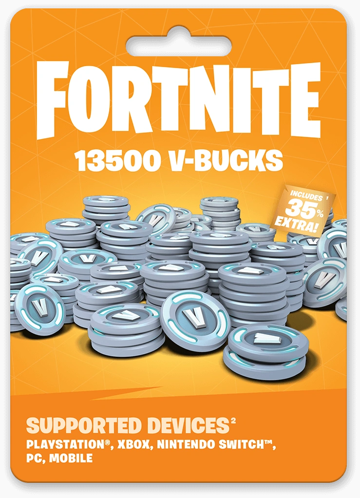 Image of 13,500 V-Bucks card and 2,800 V-Bucks card.